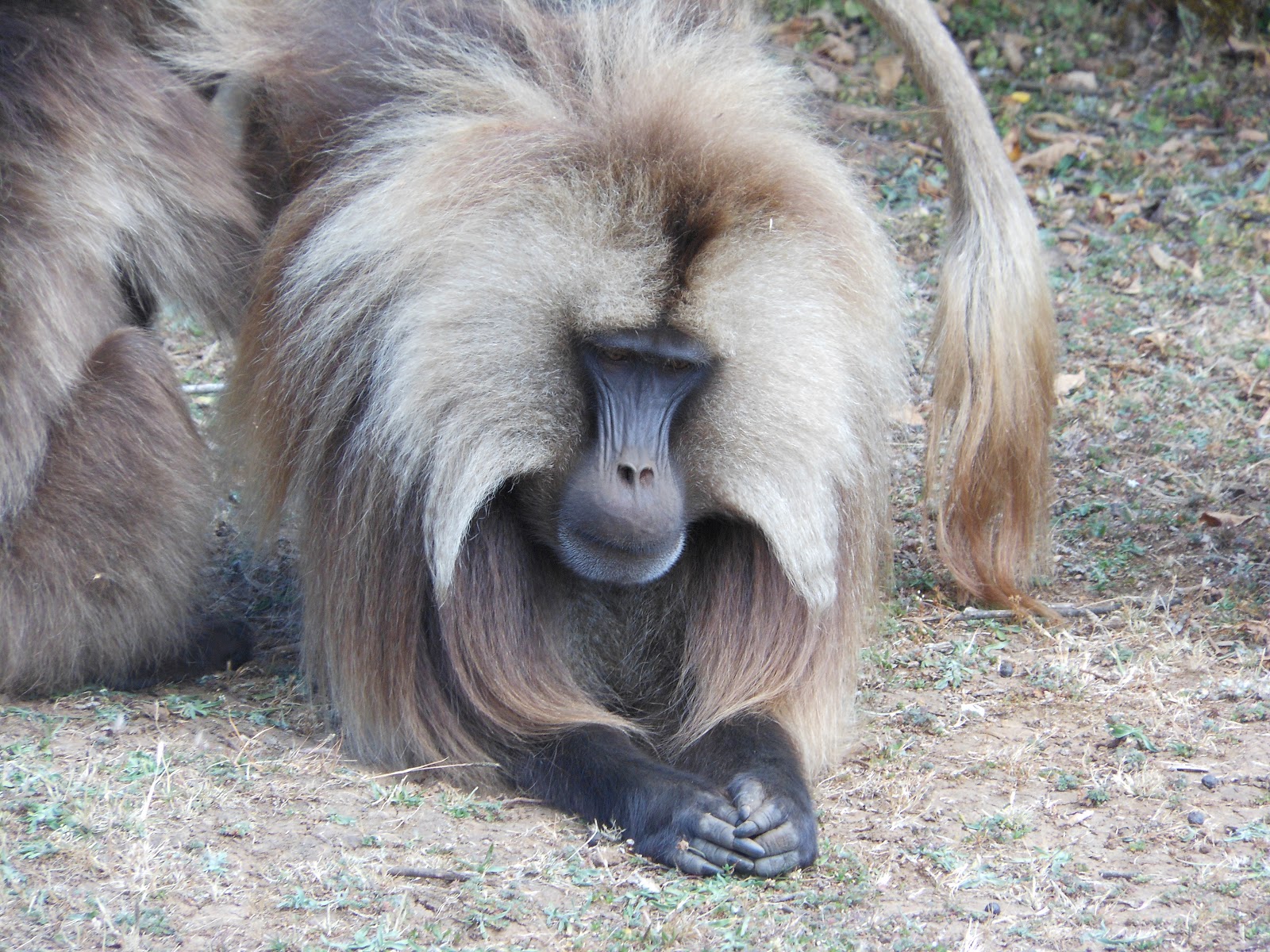 In case  you haven’t guessed these baboons are so named because of the dominant bright pink flesh in the middle of the chest.  It’s really large on the malesas you can see in this picture. We met tribes of Bleeding Hearts several times as we went on down the mountain and they were never the slightest bit hostile or aggressive.  When we got closer than about 2 feet they would simply meander as a group a little further on.   I worried a bit when we had to make one of our find-a-bush stops smack in the middle of a huge tribe, but they didn’t even look our way.